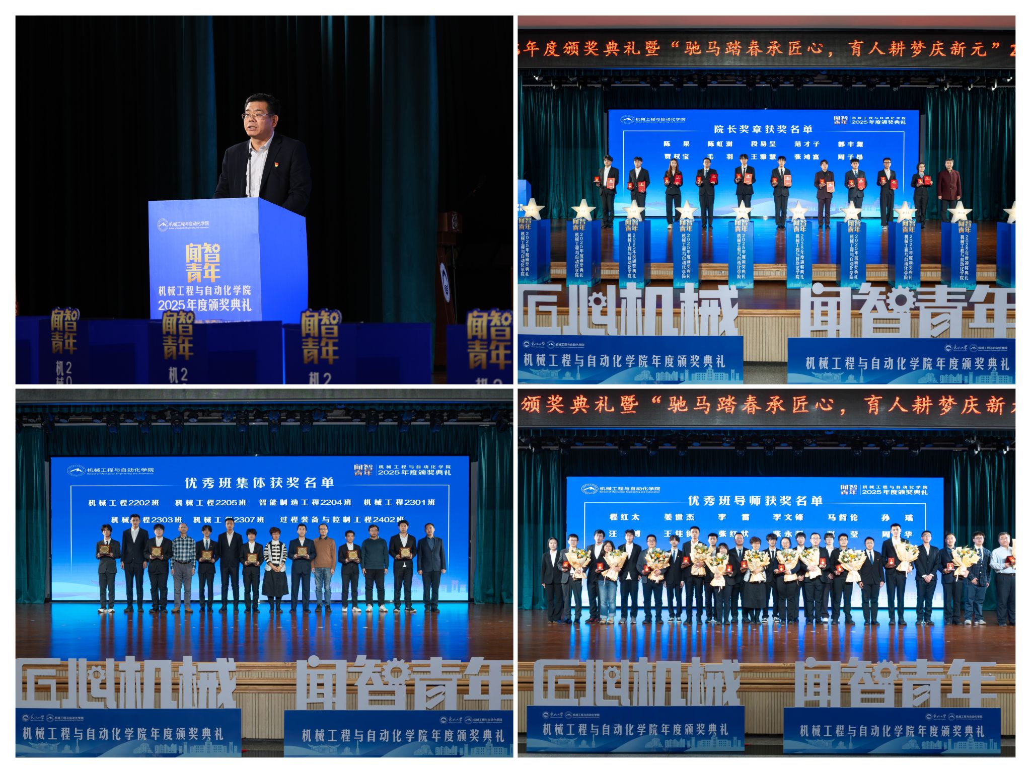 学院党委郝建山正在致辞中系统回首了一年来学院取得的主要成绩。学院积极办事国度计谋,投身深度金属矿智能开采纳配备全国沉点尝试室扶植,并正在环节科研范畴实现标记性冲破,获得国度严沉专项支撑。同时,学院成功引进增材取激光制制范畴领军团队,稳步推进学校新增学位点扶植,为久远成长奠基根本。正在人才培育方面,学院学子表示凸起,研究生学术丰盛,结业生就业率持续连结高位,展示了全面成长的优良素养。郝建山阐释了“闻智青年”品牌的育人内涵,勉励全体师生胸怀“国之大者”,将小我成长融入“制制强国”计谋,过硬本事,怯于立异创制,勤奋成为担任平易近族回复大任的时代新人。副院长罗忠表扬决定。颁环节分三轮顺次进行。起首颁布的是“院长章”,刘云飞为毛羽等10名正在专业进修、科技立异、社会实践等方面表示杰出的学生颁布章。随后颁布“优良班集体”项,班导师代表为7个正在班风、学风及凝结力扶植中成效显著的班级颁。最初,仪式聚焦育人一线论理学生代表向获评“优良班导师”的教员们献上鲜花取荣誉证书,表达诚挚感谢感动。“院长章”获得者代表毛羽连系科研竞赛取意愿办事履历,讲述了“道阻且长,行则将至”的成长;“优良班集体”获代表豆煜轩分享了班级凝心聚力、共建优秀学风的活泼经验。正在“闻智匠心 共话青蓝”出格环节,优良班导师马哲伦取所带班级学生代表刘定佳同台交换,从分歧视角展示了师生间思惟引领、学业互帮、讲授相长的温情互动,彰显了育人一线的深挚交谊取结实成效。据悉,“闻智青年”是机械工程取从动化学院出力打制的文化育人品牌。本次颁仪式既是年度的集中展现,激励朝上进步的主要平台,旨正在指导全体学生以先辈为楷模,坚想、夯实专业根本、锻制立异能力,勤奋成长为具有家国情怀、全球视野取创制活力的杰出工程人才,为学校“双一流”扶植和高质量成长注入芳华力量。